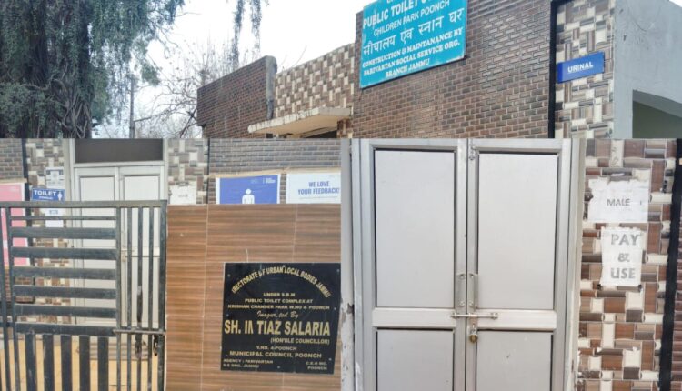 مرکزی زیر انتظام جموں و کشمیر کے سرحدی ضلع پونچھ کے شہر خاص میں لاکھوں روپے کی لاگت سے تعمیر جو راہگیر، مسافر، خواتین و بزرگ افراد جو شہر میں رفع حاجت کے لیے پریشان ہوتے تھے انکی مجبوریوں کو مد نظر رکھتے ہوئے عوام کی کمائی سے وصولے ٹیکس سے میونسپل کونسل نے تعمیر کیے بیت الخلاء پر تالے لگے ہونے سے عوام کو سخت مشکلات کا سامنا کرنا پڑتا ہے جس پر عوام و سماجی کارکنان نے اس پر سخت برہمی کا اظہار کیا ہے۔