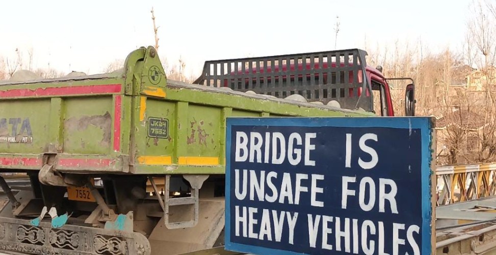 وسطی کشمیر کے ضلع بڈگام میں حکام نے نالہ سخنانگ کے اوپر بیرواہ بیلی پل کو بھاری گاڑیوں کے لیے غیر محفوظ قرار دیتے ہوئے ان کی نقل و حرکت کو اگلے نوٹس تک محدود کر دیا ہے۔
