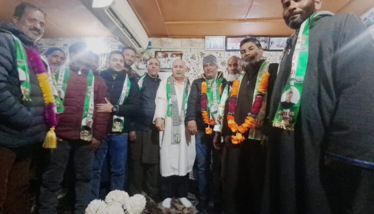 جنتا دل یونائیٹڈ (جے ڈی یو) کے سرینگر دفتر میں آج ایک شمولیتی تقریب منعقد ہوئی، جس میں سابق بی ڈی سی ممبر بلاک وایول، تحصیل کنزر، محمد اکبر شیخ نے علاقے کے تمام سرپنچوں کے ہمراہ باضابطہ طور پر جے ڈی یو میں شمولیت اختیار کی۔ اس موقع پر جے ڈی یو کے صدر جی ایم شاہین، ریاستی سیکریٹری جاوید اقبال اور نیلپورہ، پٹن سے منظور احمد لون موجود تھے۔