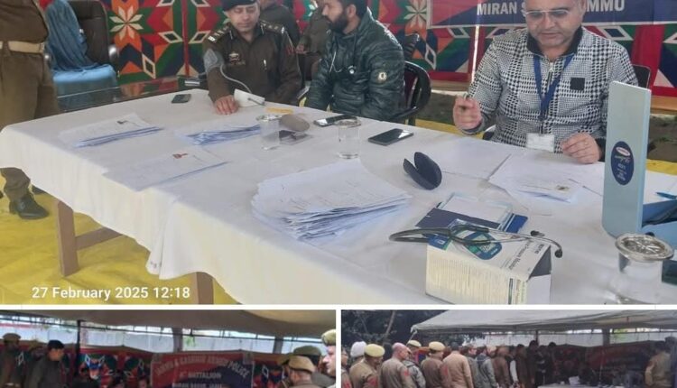 A medical for the official check-up for all officers/officials was organized at JKAP-8TH battalion Headquarters at Miran Sahib in collaboration with BMO R.S.PURA. The aim of said initiative was to assess the medical conditions of the unit police personal at regular intervals. In the said camp commandant JKAP-8TH Battalion personally underwent medical checkup along with other Gazetted Officers. He emphasized the importance of such health camps, stating that personnel in uniformed servicers often find difficult to undergo regular medical check-ups due to their duties. Said camp was also organized with the aim to find out one stop solution for monitoring the health of Officers/Officials .208 number of police personnel underwent and attended the said medical camp. A medical team comprising of 02 Doctors namely Dr. Povinder Singh and Dr. Ashok Kumar Chowdary from Govt. Hospital R.S.Pura, deputed by BMO R.S.Pura examined the officers/ jawans and advised them for the betterment and maintenance of their health. Apart for this Dy.SP Sh.Om Prakash Chib Adjutant JKAP–8TH Battalion, Dy.SP Sh. Bhupinder Singh Quarter Master JKAP-8TH Battalion and Dy.SP Sh. Tilak Raj JKAP-8TH Battalion also participated in the said medical check-up. Such health supporting event was a part of Police welfare measures to ensure, wellbeing of manpower and to make them health conscious.