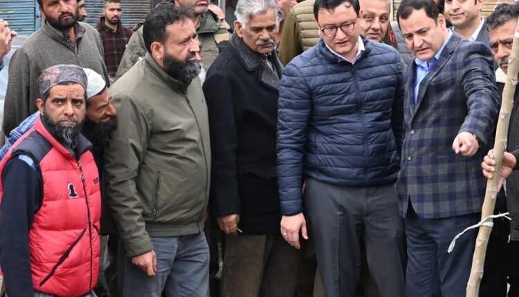 BARAMULLA, MARCH 27: Minister for Agricultural Production, Rural Development Department, Javed Ahmad Dar, today visited the old Town Baramulla to take stock of the situation following a devastating fire incident occurred in the intervening night of March 23.