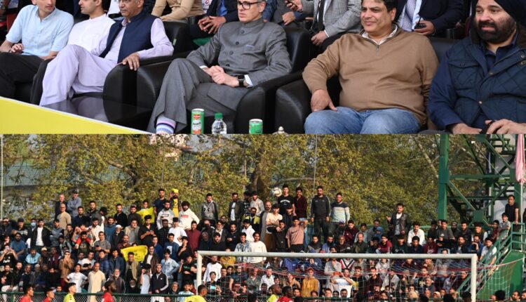 SRINAGAR, APRIL 6: Chief Minister Omar Abdullah on Sunday attended an I-League football match between Real Kashmir Football Club (RKFC) and Churchill Brothers Goa at the TRC Ground in Srinagar.