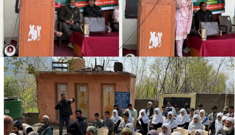 SRINAGAR, APRIL 14: Continuing its endeavour to eradicate menace of drugs from the society, an awareness programme on Drug De-Addiction was conducted here today at Government Higher Secondary School (GHSS) Khonmoh on the directions of Deputy Commissioner (DC) Srinagar, Dr Bilal Mohi-Ud-Din Bhat.