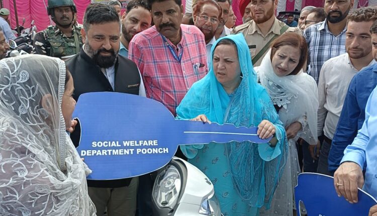 Sakeena Itoo distributes motorized Tricycles among specially abled persons at Poonch